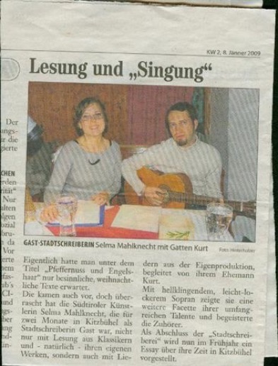 Meist begleitet mich mein Mann Kurt Gritsch an der Gitarre oder bei kleinen Sketches als Dialogpartner. Dadurch bleibt die Veranstaltung abwechslungsreich und kurzweilig.