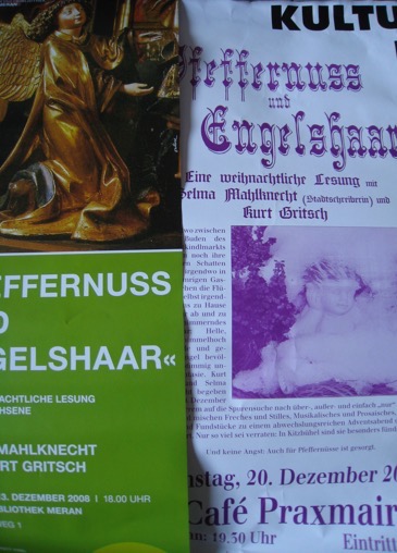 Ich lese gern vor. Deswegen trete ich längst nicht nur bei meinen Buchvorstellungen als Rezitatorin auf. Vor allem in der Adventszeit sind meine Weihnachtslesungen mittlerweile eine Art Tradition geworden, aber ich habe auch schon im Vinschger Zug oder zu Ostern gelesen. Ich wähle zu einem bestimmten Thema passende eigene und fremde Texte, wobei es mir ein Anliegen ist, immer etwas Neues zu bringen und mich nicht zu wiederholen. Dadurch entstehen auch viele neue Geschichten und Gedichte, die ich oft eigens für die jeweilige Lesung geschrieben habe. Ich halte das für ein Qualtitätsmerkmal.