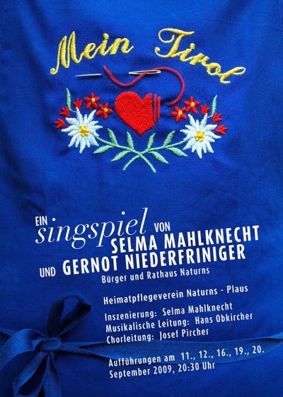 Premiere war am 11. September 2009 im Bürger- und Rathaus von Naturns. Aufgrund des großen Publikumserfolgs wurde am 23. September 2009 noch eine Zusatzaufführung eingeschoben. Insgesamt haben an die 2.000 Besucher “Mein Tirol” zu einem unerwarteten Erfolg werden lassen.